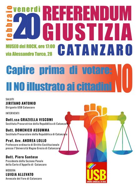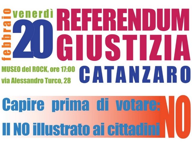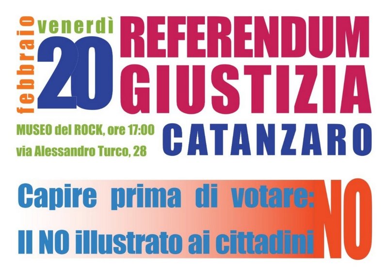 Catanzaro, 20 febbraio al Museo del Rock, Via Alessandro Turco convegno sulle motivazioni del no al referendum