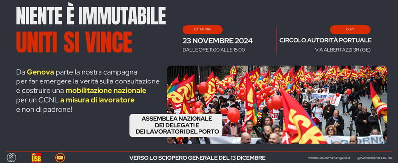 CCNL Porti: niente è immutabile, uniti si vince! Assemblea nazionale portuali il 23 novembre a Genova