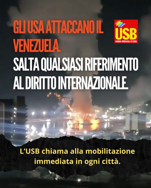 Gli Usa attaccano il Venezuela. Salta qualsiasi riferimento al diritto internazionale, l’imperialismo ha scelto la violenza come unica forma di dominio sui popoli. L’USB chiama alla mobilitazione immediata in ogni città