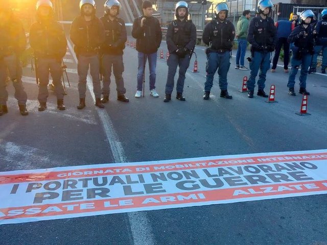 Decine di attivisti contro la guerra tra cui i membri della federazione USB di Livorno hanno bloccato il ponte mobile di via Mogadiscio per impedire il transito, ma la celere è intervenuta per garantire il passaggio di armi. Un atteggiamento che denunciamo con forza: evidentemente i tentativi del governo di smarcarsi dagli interessi bellici americani sono solo di facciata, dato che per garantire il traffico di armi da una base USA si fa ricorso alla polizia.