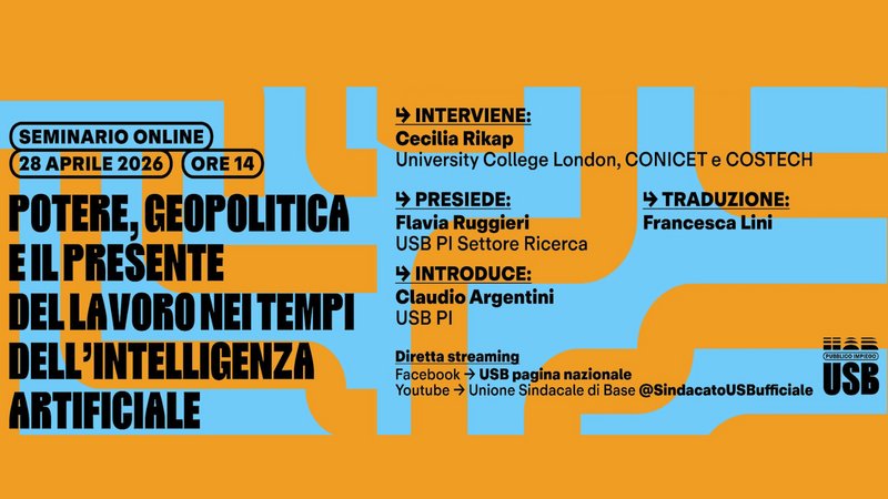 Seminario online USB PI: “Corporate power, geopolitics and the present of labour in AI times" 28 Aprile 2026 ore 14