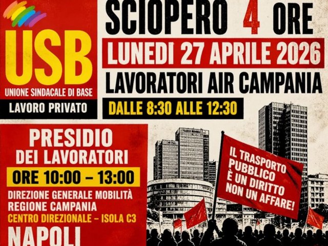 Lunedì 27 aprile 2026 sciopero di 4 ore che interesserà il personale dipendente di AIR Campania, dalle 8:30 alle 12:30.