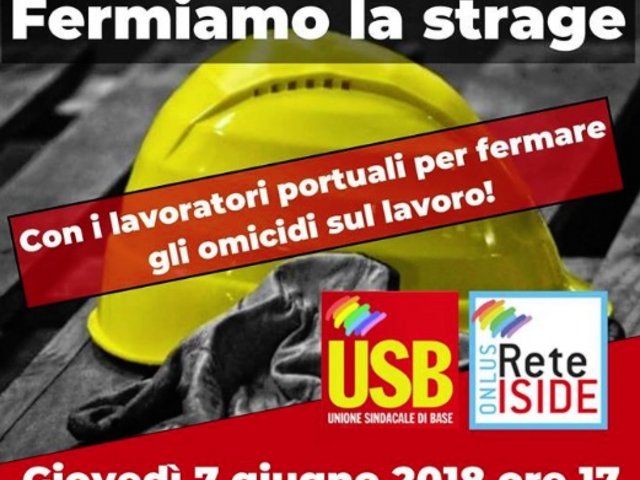 Per giovedì 7 giugno l'Unione Sindacale di Base ha deciso di organizzare un convegno, presso la Camera di Commercio di Livorno. Saranno presenti alcuni delegati RSU e RLS del porto di Trieste e Genova, Severo Lutrario, ispettore del lavoro, Fabio Galati della rete lavorareinsicurezza.org, Sergio Bellavita dell'esecutivo nazionale USB, Simone Selmi RLS Piaggio e Massimo Lami delegato sindacale dell'acciaieria Aferpi di Piombino.