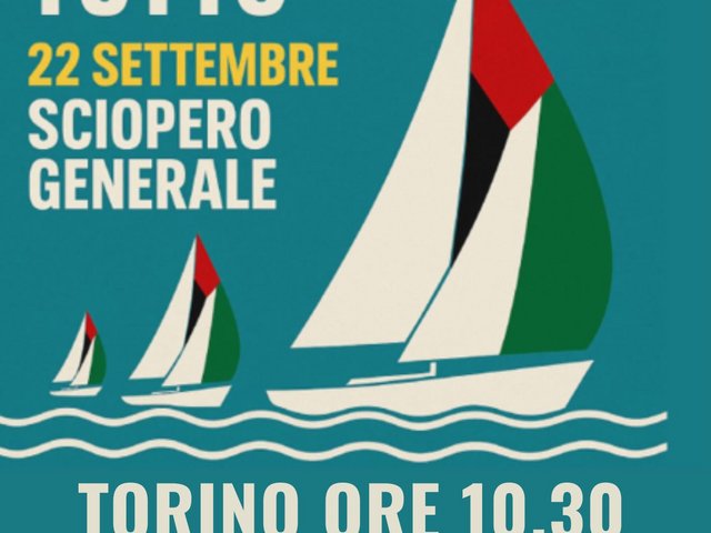 Nell’ambito dello sciopero generale indetto da USB per l’intera giornata di lunedì 22 settembre 2025, anche in Piemonte come in tutta Italia si terranno iniziative pubbliche per la mobilitazione in sostegno del popolo palestinese, della missione della Global Sumud Flottilla e contro l’economia di guerra.